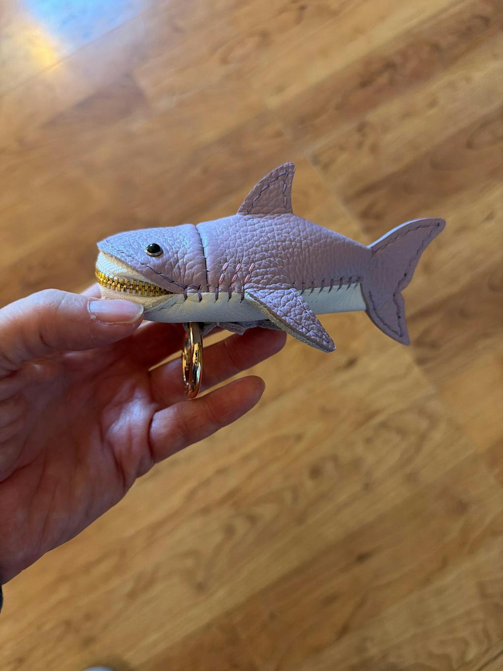 I have a friend who loves guitars and stingrays but constantly loses her keys, especially on frantic Monday mornings. So, I made a leather stingray keychain that holds a guitar pick and has a magnet. Now, this stingray can guard her pick and make sure she always knows where her keys are. Besides a guitar pick, what else do you want to feed this stingray with?