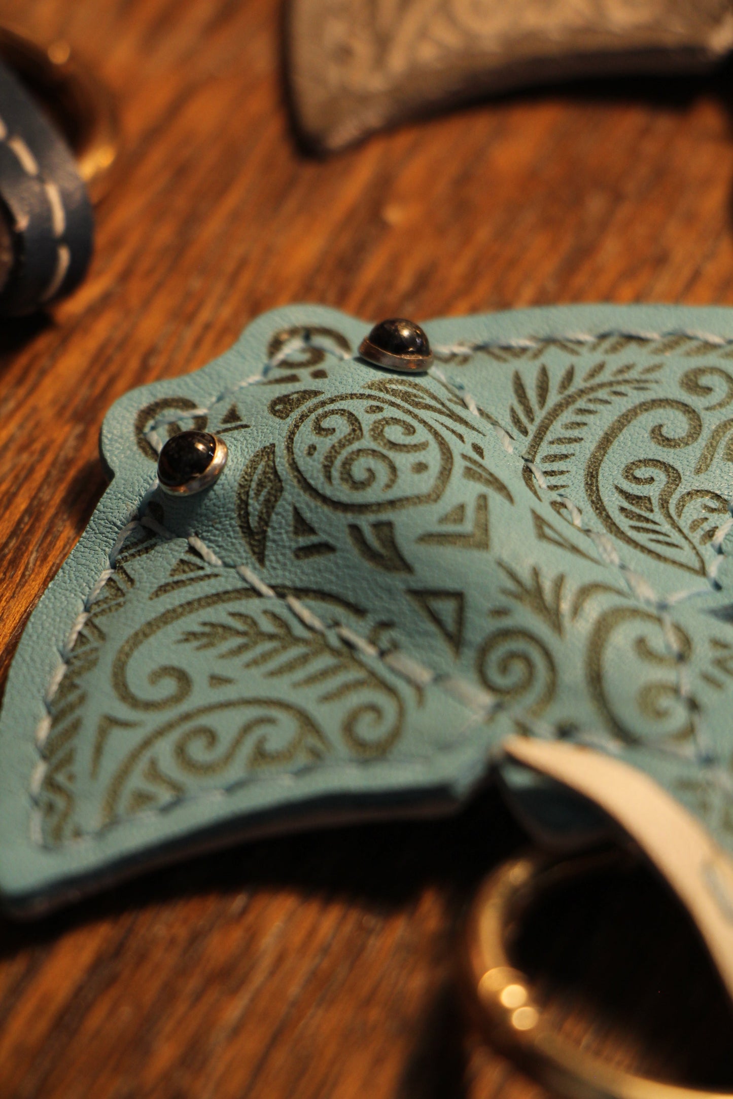 I have a friend who loves guitars and stingrays but constantly loses her keys, especially on frantic Monday mornings. So, I made a leather stingray keychain that holds a guitar pick and has a magnet. Now, this stingray can guard her pick and make sure she always knows where her keys are. Besides a guitar pick, what else do you want to feed this stingray with?